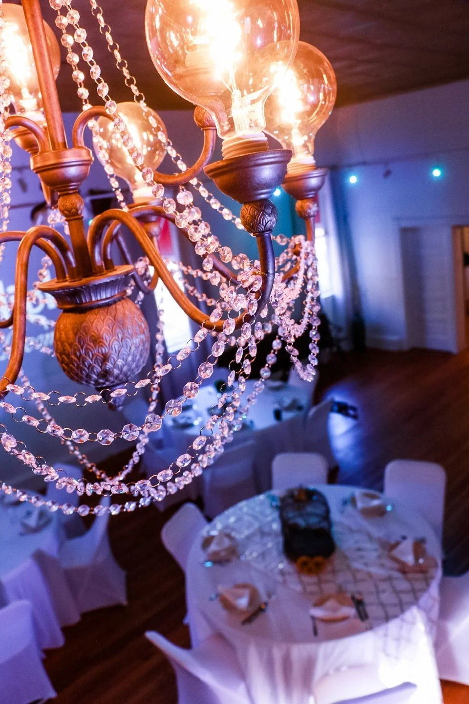 Let our team dress the ballroom with large bulb garden string lights. Romantic lighting makes a huge impact on the feel of your event. Get that dreamy bokeh effect in your photos too! This rental is for lights in the ballroom as outdoor patio lights are already included in the basic package.